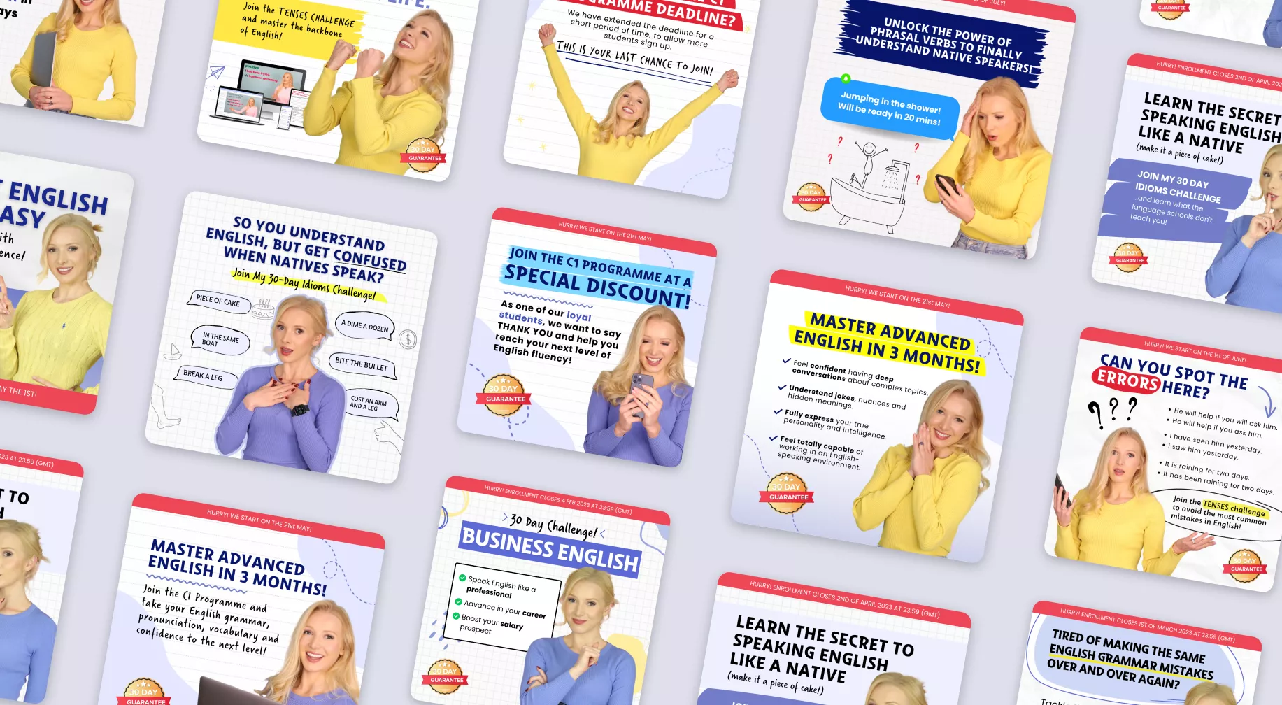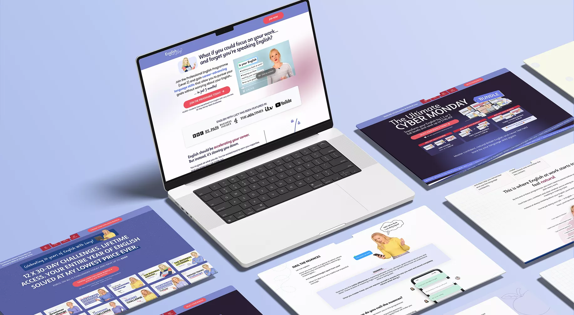 English with Lucy serves a large, price-sensitive audience. Direct response principles matter here. Deadlines, open and close carts, promotions, and urgency are part of how the business operates. Almost every project had a fixed launch date.