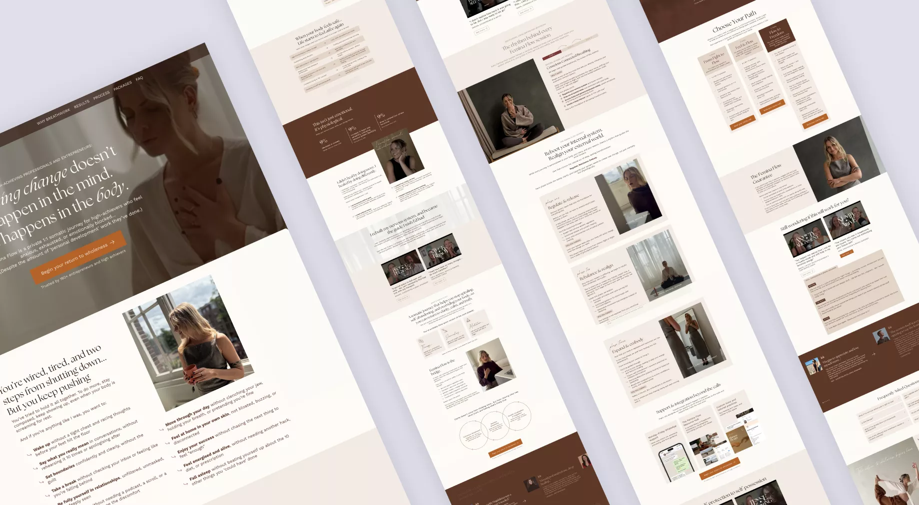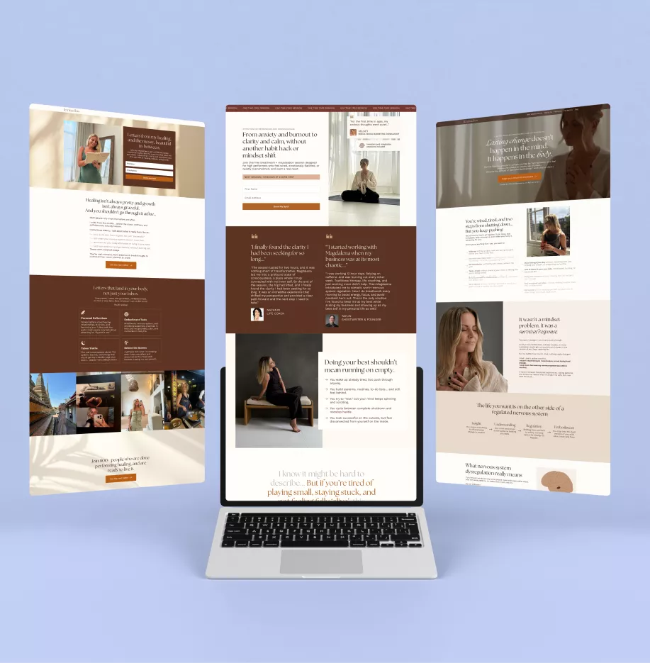 Before designing anything, we spent time exploring Magdalena’s story and how it connects to her work today. Her ideal client is essentially herself a few years ago, someone intelligent, self-aware, and curious, but disconnected from their body and overwhelmed.