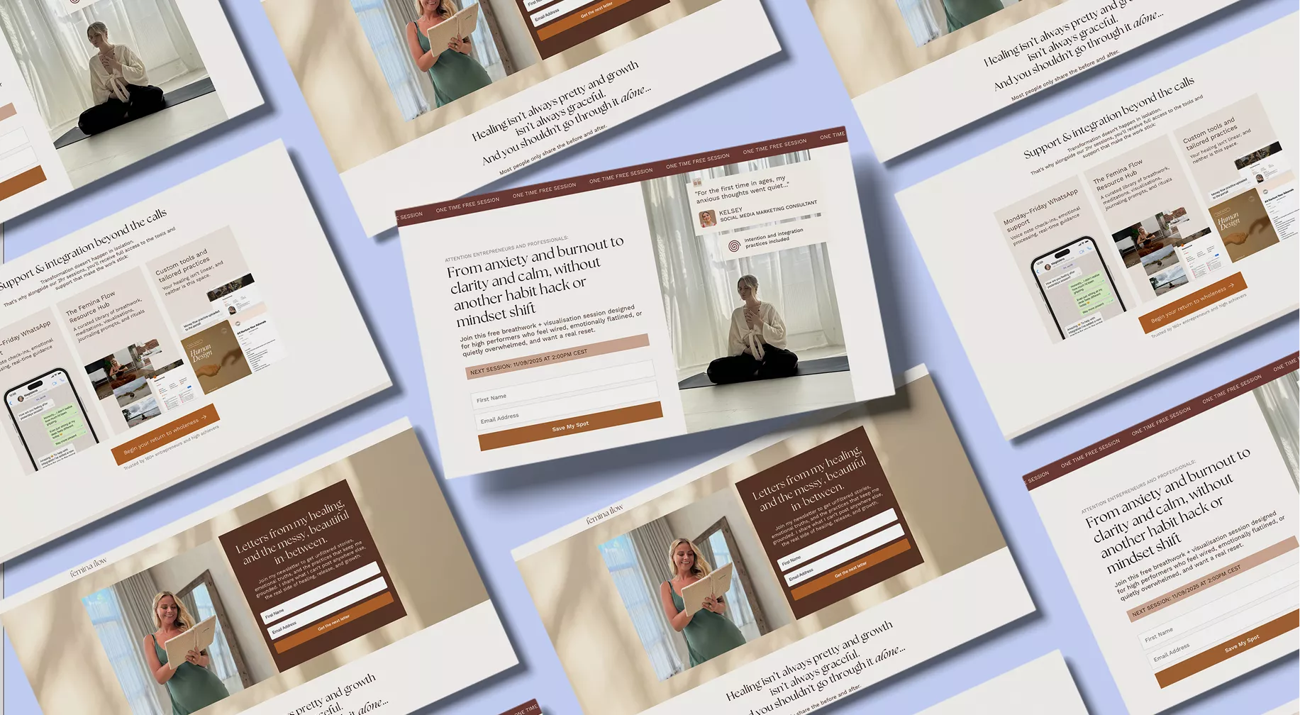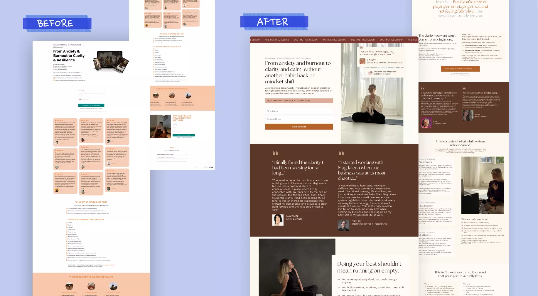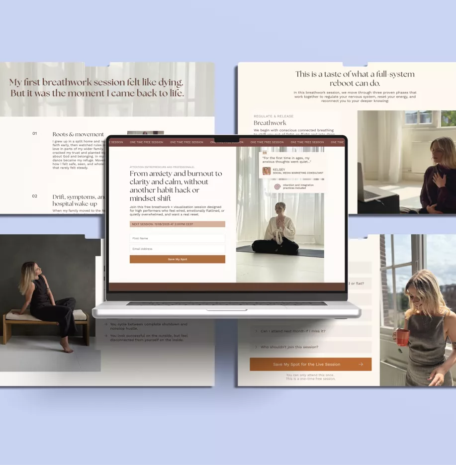 The landing pages were redesigned to give people proper context. We explained what happens in the free two-hour breathwork session, why it’s structured the way it is, and who it’s for. We also took time to educate people on her method, so they could understand what made it different before committing their time.